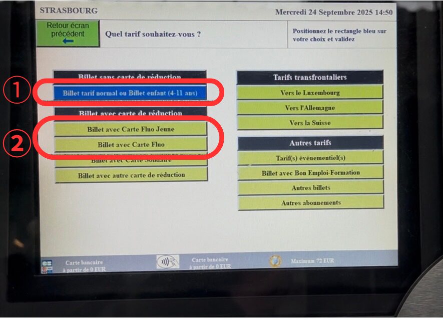 バス(cars Fluo)も割引対象ですが、対象のバスは本数が少なく、Bas-Rhinでは割引対象外であったりするので注意してください