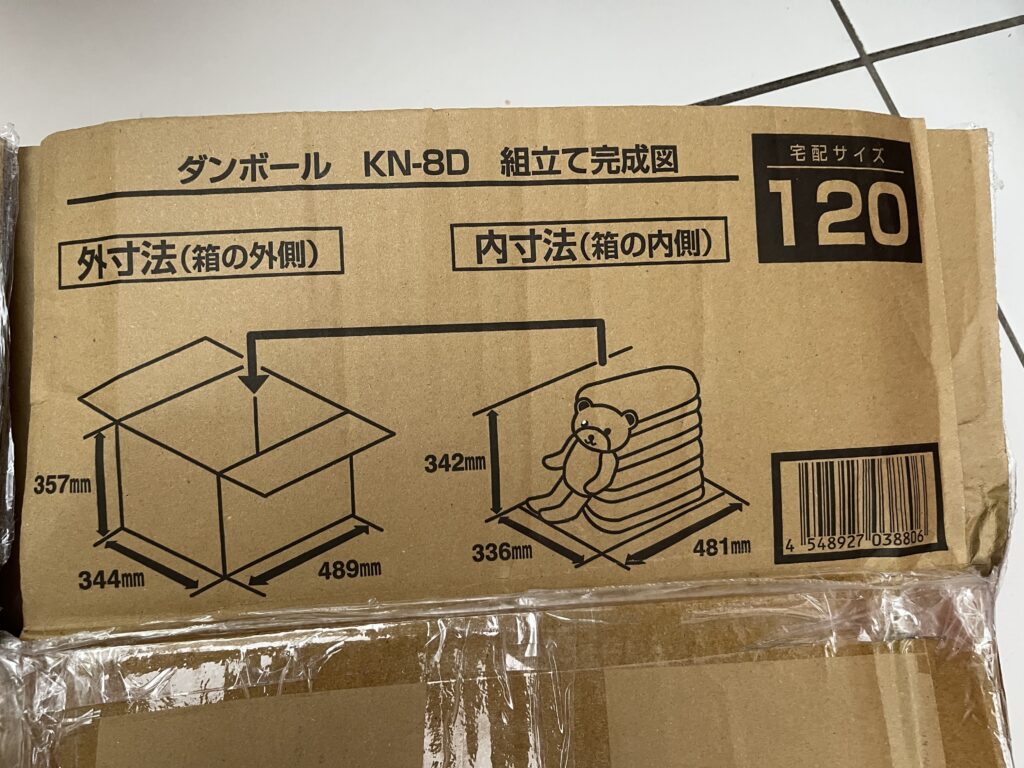 私はホームセンターで、宅配サイズ120のダンボールを2箱買って使用しました