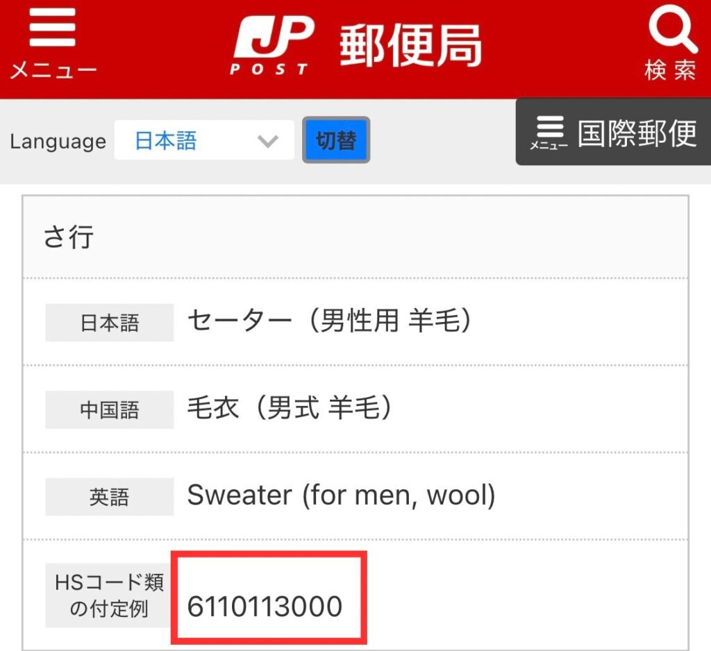 そして、赤い四角で囲ってる10桁の番号がHSコードです