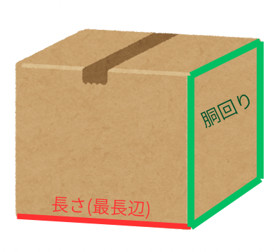 サイズ | 長さ+横周(=最長辺以外の合計)≦3m、最長辺は1.5mまで | 長さ+横周(=最長辺以外の合計)≦2m、最長辺は1.5mまで | 長さ+横周(=最長辺以外の合計)≦2m、最長辺は1.5mまで |
